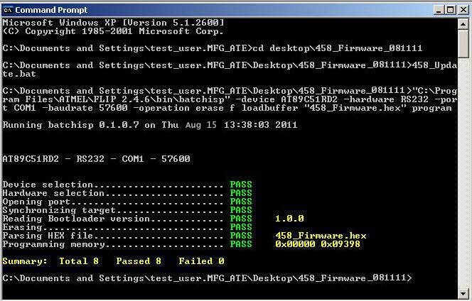 During the updating process, a screen similar to the one shown below is displayed. When the update is completed, check and verify that all of the tests show PRAS and none of them displayFAIL.