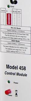 DIP slide switches are the switches on the front of the 458-CM-20 Control