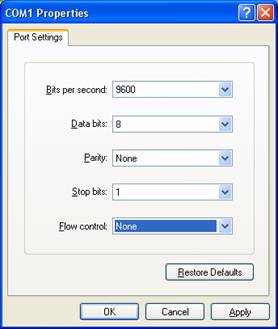 = 8, parity = none, stop bits = 1, and flow control = none and then press "oK."